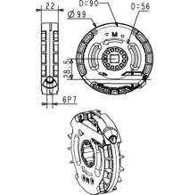 44,40 €Treuil à couple conique à entrée hexagonale de 7 mm femelle du côté de la manivelle et une sortie vers l'axe d'enroulement via un crabot mâle ZF avec en son centre un diamètre.